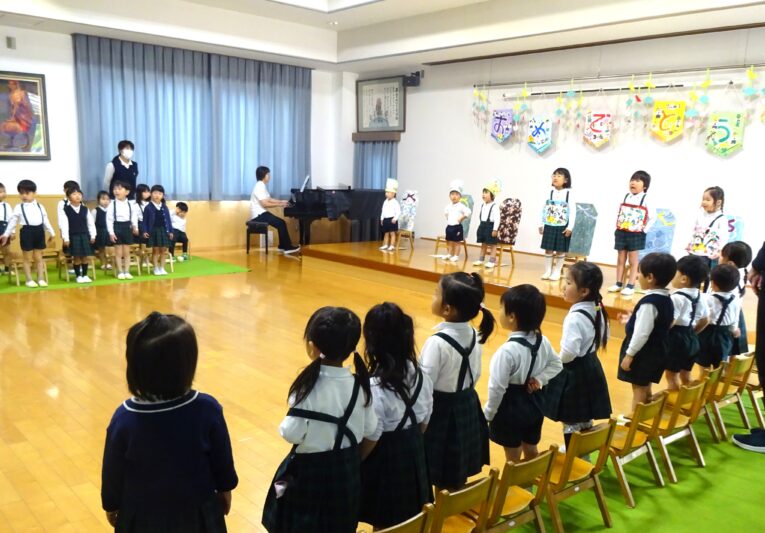 投稿日: 2026年4月8日2026年4月8日4月第2号 『入園式・お友達増えたよ!』 4月6日(月)新しいお友達18人を迎えしました。一人ひとり名前を呼んでもらって、まっさらの赤い帽子や桃色の帽子をかぶせてもらったよ。みんなから拍手のお祝いをしてもらいました。 『僕もお祝いしてもらったよ。うれしかったよ。お地蔵様にご挨拶、よろしく・・・・。おはなさんもよろしくね・・・・・。』 おめでとう!おめでとう!